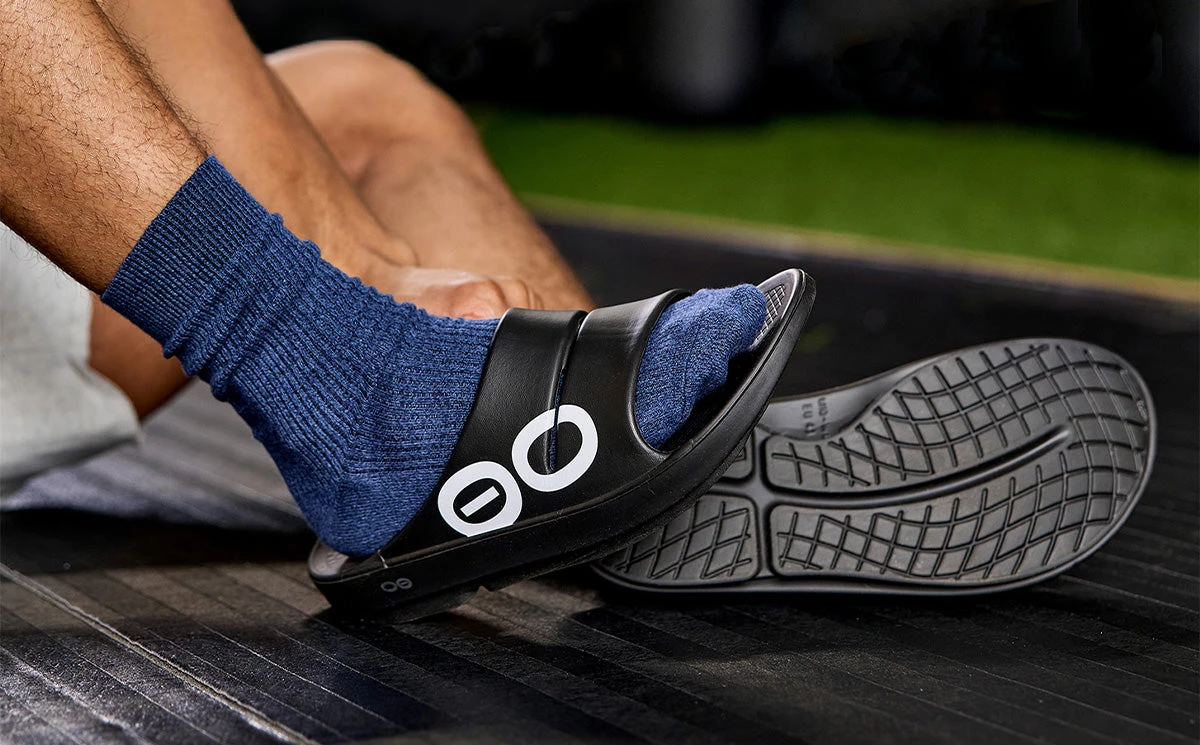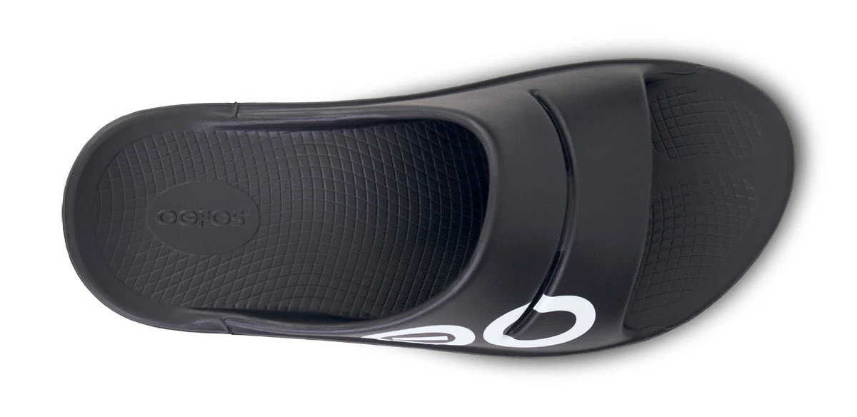OOfos Men’s OOahh Sport Slide Sandal – Black White