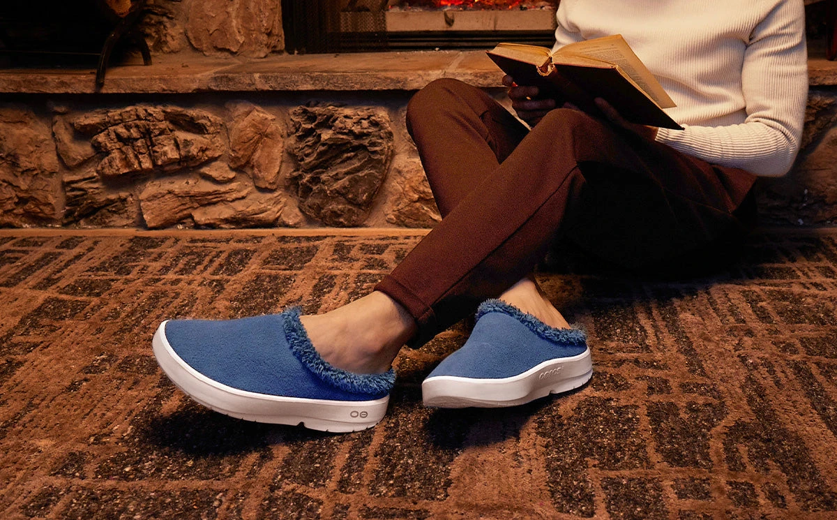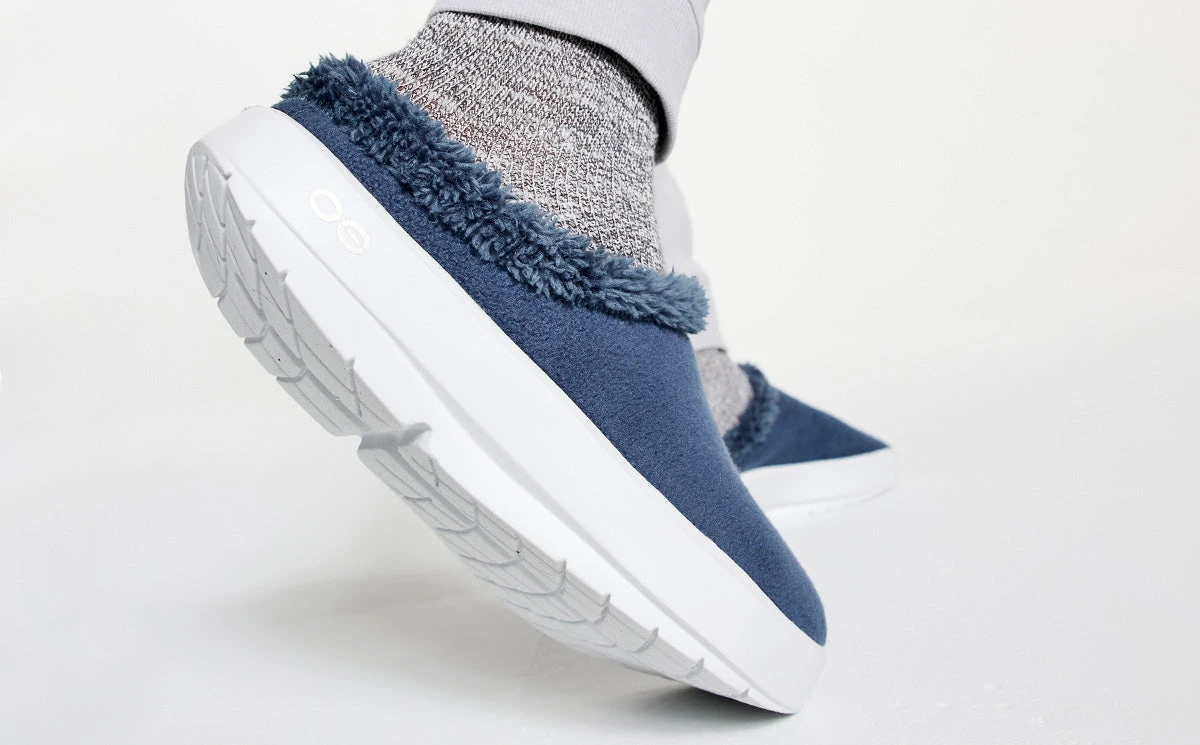 The OOcoozie Mule is the perfect around the house or post-gym option to slide into for stability and relief. Our unique one-of-a-kind OOfoamโข technology that absorbs impact is matched with a warm vegan sherpa material that is both recyclable and machine washable. Add in the patented footbed design that cradles and supports arches and youโll recover faster. A versatile hygge style boasting active recovery – get cOOzy.