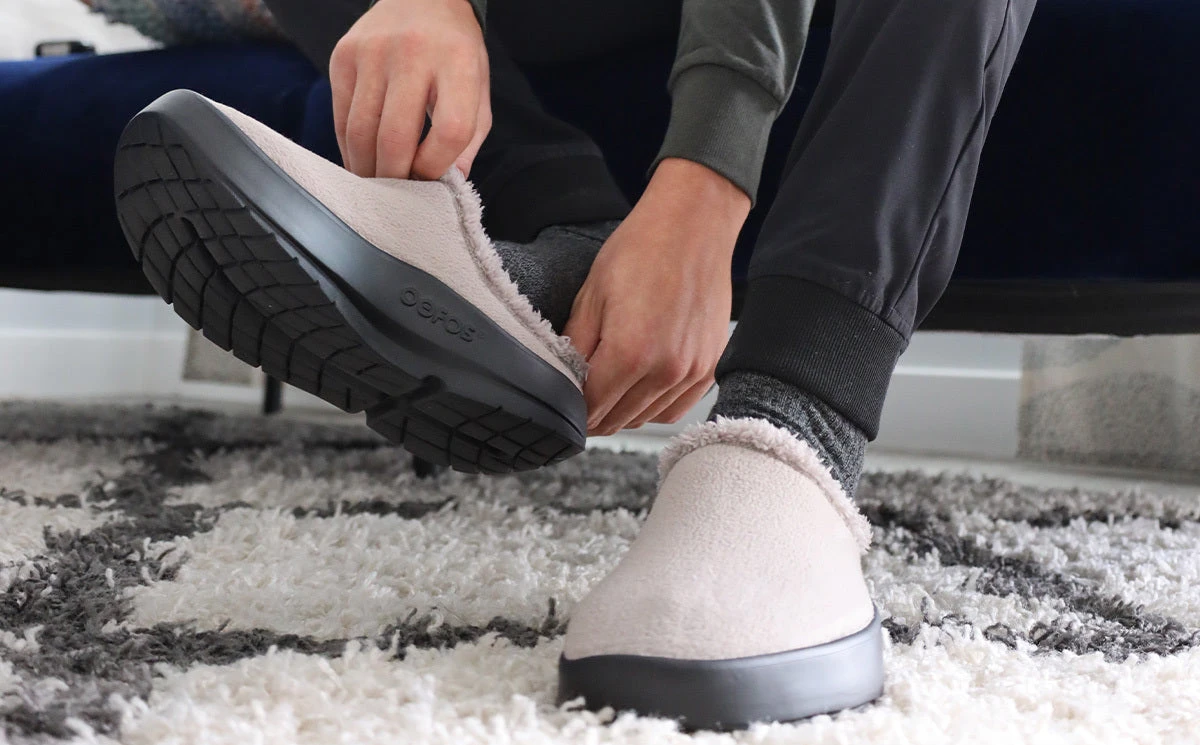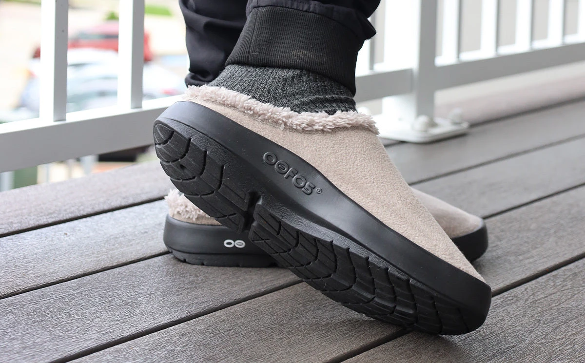 The OOcoozie Mule is the perfect around the house or post-gym option to slide into for stability and relief. Our unique one-of-a-kind OOfoamβ’ technology that absorbs impact is matched with a warm vegan sherpa material that is both recyclable and machine washable. Add in the patented footbed design that cradles and supports arches and youβll recover faster. A versatile hygge style boasting active recovery – get cOOzy.
