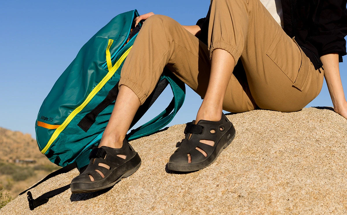Introducing OOcandoo. Travel-ready,ย OOfoamโข technology and the patented OOFOS footbed take on a newย versatile, lightweight and flexible design. The addition of aย hook and loop fastener means you can easily slide these on while maintaining a secure fit for everything from creek crossings to global traveling. From post-hikeย campsite to urban adventures, the OOcandoo brings Active Recovery and the ultimate OOfeel to any excursion.